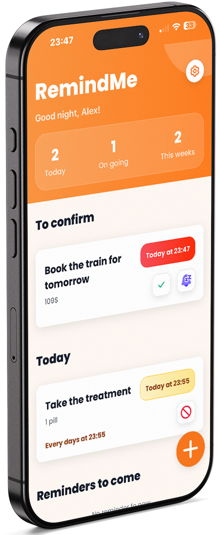 RemindMe is your intelligent reminder companion that ensures you never miss important tasks, appointments, or moments that matter most.